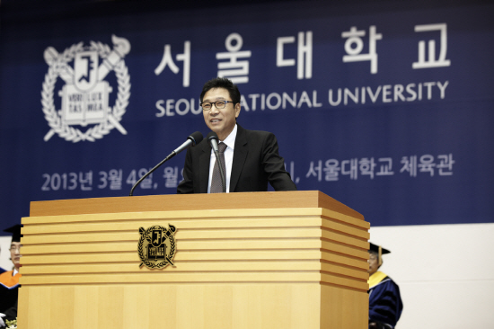 이수만 프로듀서는 4일 오전 11시 서울 관악구 신림동 서울대학교 체육관에서 진행된 2013학년도 입학식에 참석, 71학번 선배이자 인생 선배로서 신입생들에게 축사를 선사해 뜨거운 박수를 받았다.