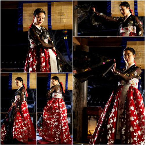 특히 김현주는 화려한 시스루 한복으로 더욱 고혹적인 분위기를 만들어냈다. 색색의 꽃이 수놓아진 속살이 다 비치는 블랙 톤의 저고리가 김현주의 관능미를 제대로 살려냈던 것. 또 반짝반짝 꽃무늬 패턴이 돋보이는 적색 한복 치마는 블랙 톤 저고리와 강렬한 대비를 이루며 눈을 뗄 수 없게 만들고 있다는 반응이다.