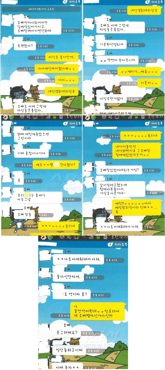 A양이 공개한 대화 내용에 따르면 당초 술을 마시지 않았다고 주장한 K씨는 "나도 어제 취했다. 술 다시는 안 마신다"라며 "같이 자려고 했는데 침대가 너무 좁아 거실로 나왔다"고 말했다.