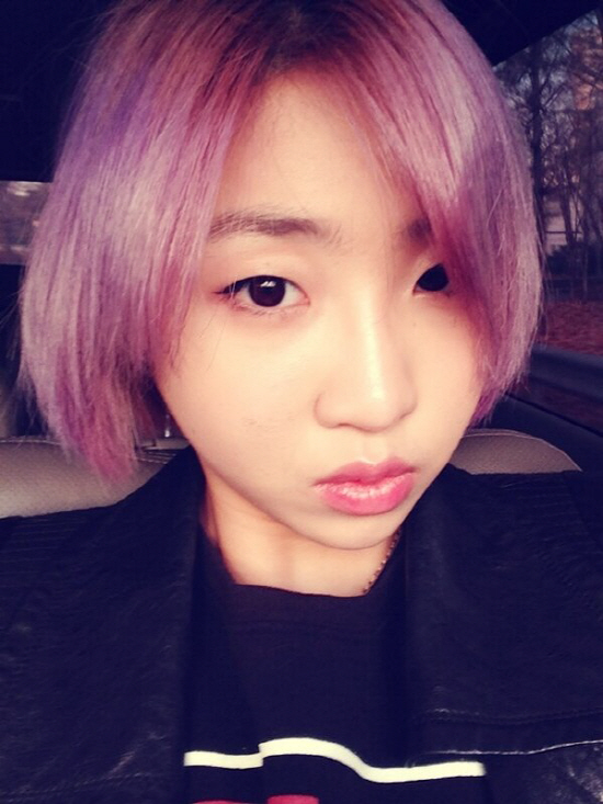 2NE1의 공민지가 보라색 헤어스타일을 공개했다.