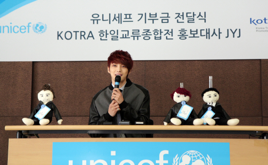 한류스타 JYJ(김재중, 박유천, 김준수)가 '한일교류종합전(KBEE2012)' 홍보대사 출연료 전액을 유니세프에 기부했다.