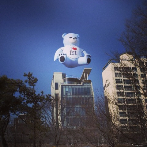 풍선은 오는 7일 공개되는 이하이의 첫 솔로앨범 '퍼스트 러브'를 알리기 위한 이벤트의 일환. 곰돌이 풍선은 이하이가 직접 '곰곰이'라고 이름을 붙였다.
