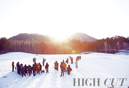 스타 스타일 매거진 '하이컷'이 SBS 수목극 '그 겨울, 바람이 분다'(이하 그 겨울) 촬영장을 독점 스케치했다. 조인성과 송혜교는 3월 초 강원도 평창군 발왕산 정상에서 진행된 '그 겨울' 촬영에서 새하얀 설원 속 데이트를 즐겼다. 나무의 눈꽃이 서로 부딪쳐 나는 '만 개의 풍경 소리'를 들려주기 위해 오수(조인성)가 오영(송혜교)을 업고 산을 오르는 모습이 한 폭의 그림처럼 펼쳐졌다. 칼바람이 부는 산에서 오랜 시간 진행된 촬영으로 인해 송혜교는 "'남부군'같은 전쟁 영화를 찍은 기분"이라며 농담하기도.