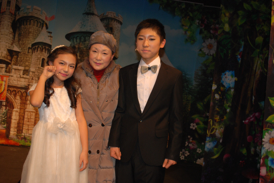| 우수에 젖은 듯한 눈망울로 차세대 스타를 꿈꾸고 있는 아역연기자 김혜성(왼쪽)이 케이엠스타 전금주 이사장(가운데)과 포즈. 오른쪽은 뮤지컬 '로빈훗과 요정들'에서 호흡을 맞춘 이재학군. |