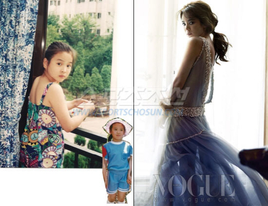 이중에는 창가에 기대 서 있거나 유치원 체육복을 입은 어린시절의 깜찍한 송혜교 사진이 눈길을 끈다. 특히 이는 패션 매거진 '보그' 화보와 비교했을 때 얼굴은 그대로, 키만 성장한 모습이어서 대표적인 모태 미녀의 진수를 보여준다.