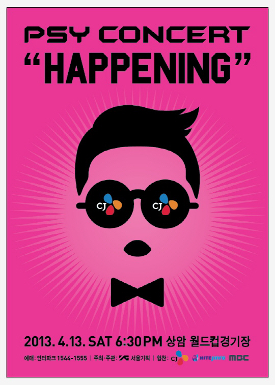 싸이는 '강남스타일' 발매 전부터 '공연킹'이라는 수식어가 아깝지 않을 정도로 화끈한 퍼포먼스와 압도적인 무대 구성을 보여왔는데 콘서트 '해프닝'에서도 이 열기를 그대로 이어가 상암벌 5만 관객을 열광시킬 전망이다.