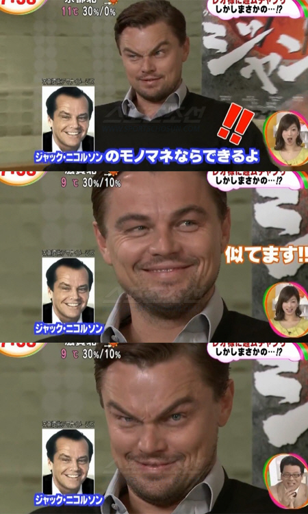 할리우드 배우 레오나르도 디카프리오가 일본 방송에서 잭 니콜슨 따라잡기에 나섰다.