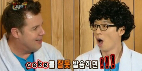 14일 방송된 KBS2 '해피투게더3'에서 원더걸스 예은은 한국인들이 특히 조심해야 할 영어 발음을 설명했다. 그는 '코크'를 예로 들어 "한국인들이 'O'를 '아' 혹은 '어'로 발음하는 경우가 있는데, 코크를 그렇게 발음할 경우 19금 단어가 되고 만다"고 말했다. 이에 유재석은 의아해 하며 실제 코크 발음을 '어'로 강조해 발음하려 했다. 그의 행동에 로버트 할리는 깜짝 놀라 "'거시기' 같은 말이다"고 소리쳤다. 유재석은 "전혀 몰랐다"며 당황해 주변을 폭소케 했다.