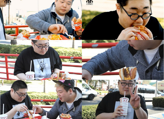 둘의 몸무게 합이 200㎏을 웃도는 실력파그룹 투빅(2BIC)이 햄버거로 글로벌한 먹방을 과시했다.