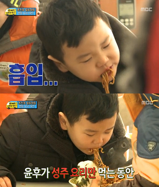음식을 먹는 소리마저 어쩌면 저렇게 맛깔스러운지. 작은 입에 한가득 음식을 넣고 오물거리는 모습을 보고 있노라면 입가에 절로 군침이 돈다. MBC '일밤-아빠 어디가'에 출연 중인 여덟살 윤후 얘기다. 가수 윤민수의 아들 윤후는 '먹방계의 샛별'이라 불리며 시청자들의 귀여움을 독차지하고 있다. 이른 아침에 일어나 졸린 눈을 비비면서도 지렁이 모양 젤리를 입에 넣고, 자기 얼굴만한 햄버거도 뚝딱 해치운다. 앞니가 빠져서 어금니로 면발을 끊어 먹는 모습은 또 어떤가. 윤후가 특히 좋아하는 '짜파구리(짜파게티+너구리)'는 방송이 나간 직후 약 2주 동안 출고량이 지난해 동기 대비 각각 87%와 50%가 늘었고, 윤후와 김성주의 아들 김민국은 이 라면 업체의 CF 모델로 발탁됐다. 윤후가 삶은 달걀을 호호 불면서 먹는 모습을 보고 '오랜만에 삶은 달걀을 먹었다'는 글도 SNS에서 쉽게 볼 수 있다.