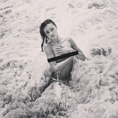 호주 출신의 슈퍼모델 미란다 커가 상반신 누드 사진을 공개했다.
