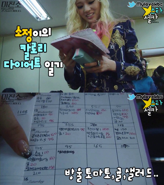 공개된 칼로리 다이어리에는 아침, 점심, 저녁, 간식으로 나누어 매일 먹은 음식들과 그에 해당하는 칼로리가 꼼꼼히 적혀있다. 또한 채소와 과일, 견과류 위주의 식단으로 영양소는 고루 갖추고 있지만, 성인 여성 일일 권장 칼로리의 절반 정도인 1000kcal를 섭취한 것으로 기록되어 있어 네티즌들은 안타까움과 함께 경악을 금치 못하고 있는 것이다.
