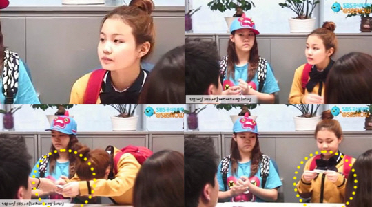 이어 상대방의 명함이 뚫어질 듯 유심히 보고 있는 모습 또한 깜찍함을 더했다.