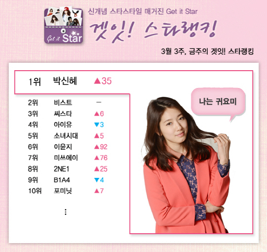 스타 스타일 매거진 어플리케이션 '겟잇스타'가 내놓은 '겟잇! 스타랭킹'에서 화제의 스타들을 만나보세요. 스타들의 멋진 화보와 주간 인기 순위를 한눈에 확인하실 수 있습니다.