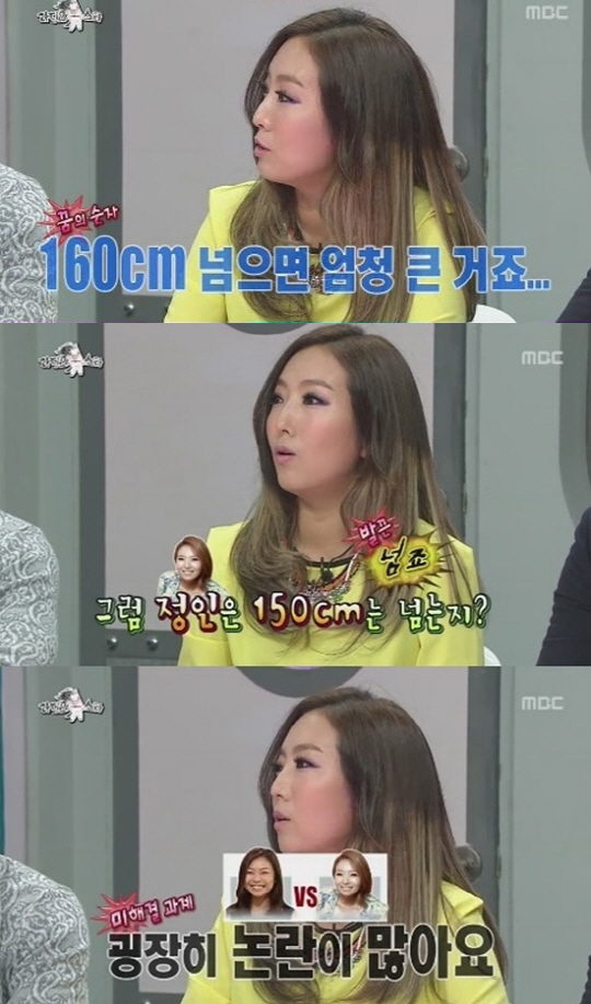 이에 정인은 "저보다 11cm 크시네요"라며, "160cm 넘으면 정말 큰 거다"고 이야기해 정인의 키가 153cm임이 정확하게 밝혀지며 스튜디오를 폭소케 했다.