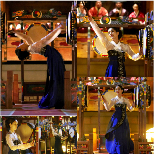29일 공개된 드라마 스틸에서 정혜영은 화려하고 신비로운 자태로 고난도 '오고무' 연주를 펼치고 있다. 기교 넘치는 손 사위와 절도 있는 몸짓으로 드라마의 품격을 한 단계 높여주는 명장면이 탄생됐다는 후문.