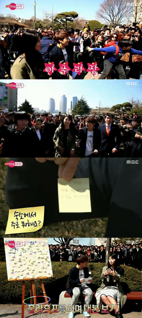 이어 경호원들의 제지에도 아랑곳 않고 학생들은 수지의 모습을 남기기 위해 카메라를 꺼내 찍기 바쁜 모습. 이에 수지는 학생들의 기분 좋은 환대에 웃음으로 화답했다.