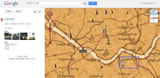 싸이가 구글 만우절 이벤트에서 대한민국 서울 강남을 대표하는 보물로 깜짝 등장해 화제를 모으고 있다.