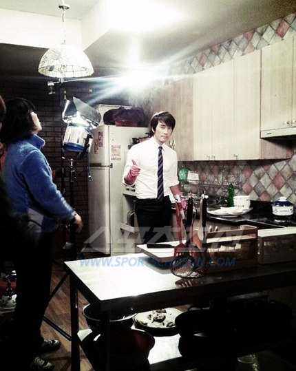 한류스타 송승헌이 깔끔한 정장 차림에 고무장갑을 낀 채 설거지 하는 모습이 공개됐다.
