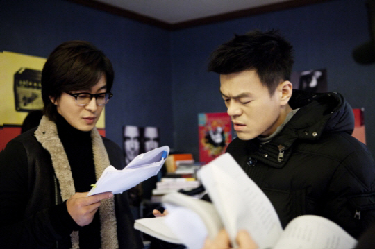 드라마 '드림하이' 출연 당시 배용준과 호흡을 맞추는 박진영.