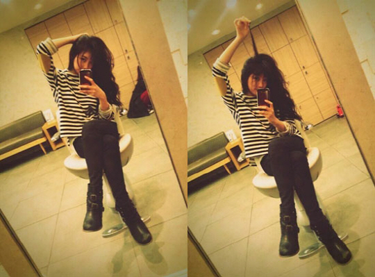 가수 겸 배우 수지가 거울을 이용한 전신 셀카를 공개했다.