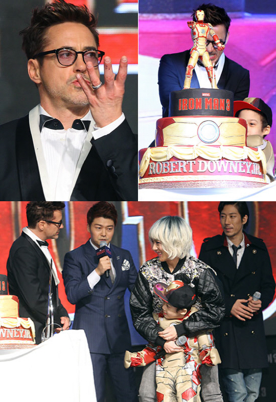 지난 4일 서울 영등포 타임스퀘어에서는 영화 '아이언맨3'의 주연배우 로버트 다우니 주니어의 레드카펫 및 48번째 생일 파티가 열렸다. 행사 진행은 방송인 전현무가 맡았으며 타이거JK와 윤미래, 비지로 구성된 MFBTY의 미니 콘서트도 열렸다. 이날 자리에는 '아이언맨'의 열성 팬으로 알려진 타이거JK-윤미래 부부의 아들 조단 군도 무대에 올랐다.