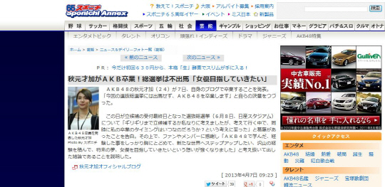 일본 걸그룹 AKB48의 중심 멤버인 아키모토 사야카가 팀을 떠난다.