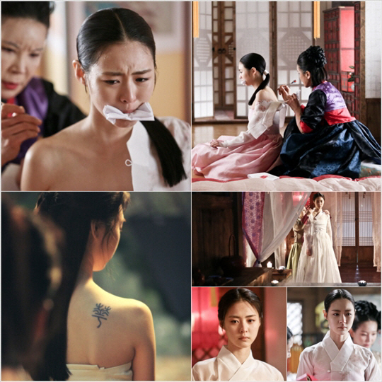 '구가의서' 이연희가 어깨에 '화(華)'를 문신으로 새기며 기구한 운명을 표현했다.