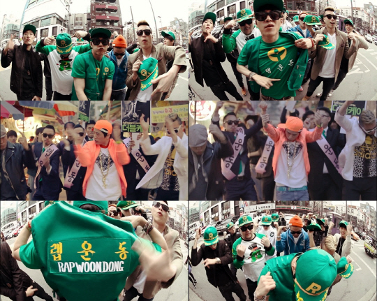 9일 공개된 '랩운동'의 뮤직비디오에 은지원, 배우 김보성, 주비트레인, 팬토, 러쉬, 팔로알토, 도끼, DJ알투, 정턱과쾌남, 비프리,테이크원 등이 출연한 것.