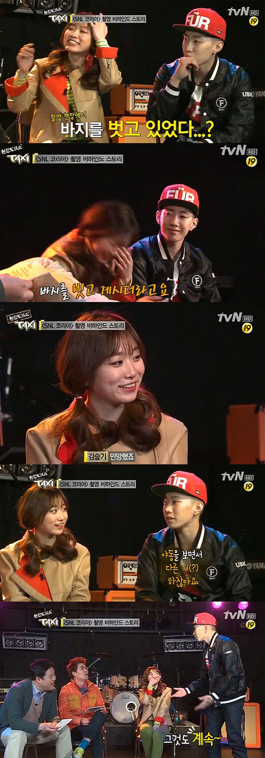 그녀의 폭탄 발언에 놀란 MC들이 "어떻게 된 것이냐"고 이유를 묻자 김슬기는 "당시 나와 재범오빠가 부부인데 혼자 야동을 몰래 보다가 아내에게 들키는 장면이었다"고 대답했다.