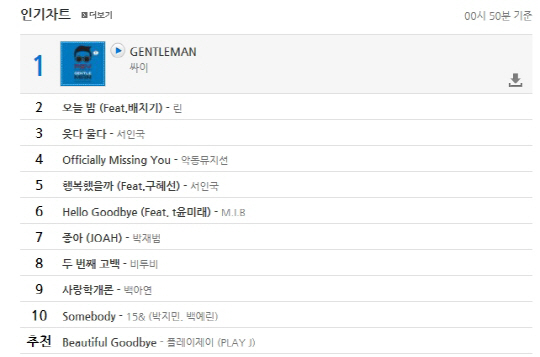 국제가수 싸이가 음원차트 공습을 시작했다.