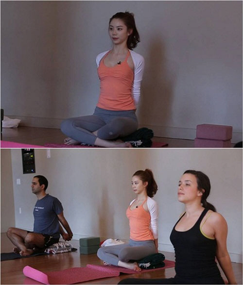 박수진은 최근 진행된 SBS E! 신규 예능프로그램 '스타 뷰티 로드' 녹화에서 뉴요커들과 함께 요가에 도전했다.