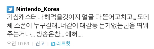 한국 닌텐도 공식 트위터에 기상 캐스터 출신 방송인 박은지를 공개 비난하는 글이 게재돼 논란이 일고있다.
