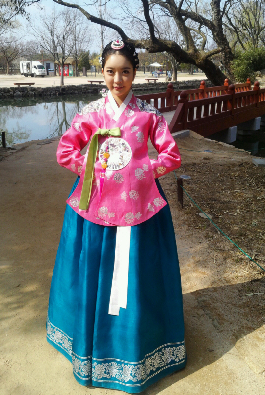 공개된 사진에서 아영은 왕실의 기품이 고스란히 느껴지는 은빛 자수가 놓인 파란색 치마와 분홍색 당의를 입고, 배씨댕기 등 화려한 머리 장식으로 고급스러운 한복 자태를 뽐냈다.