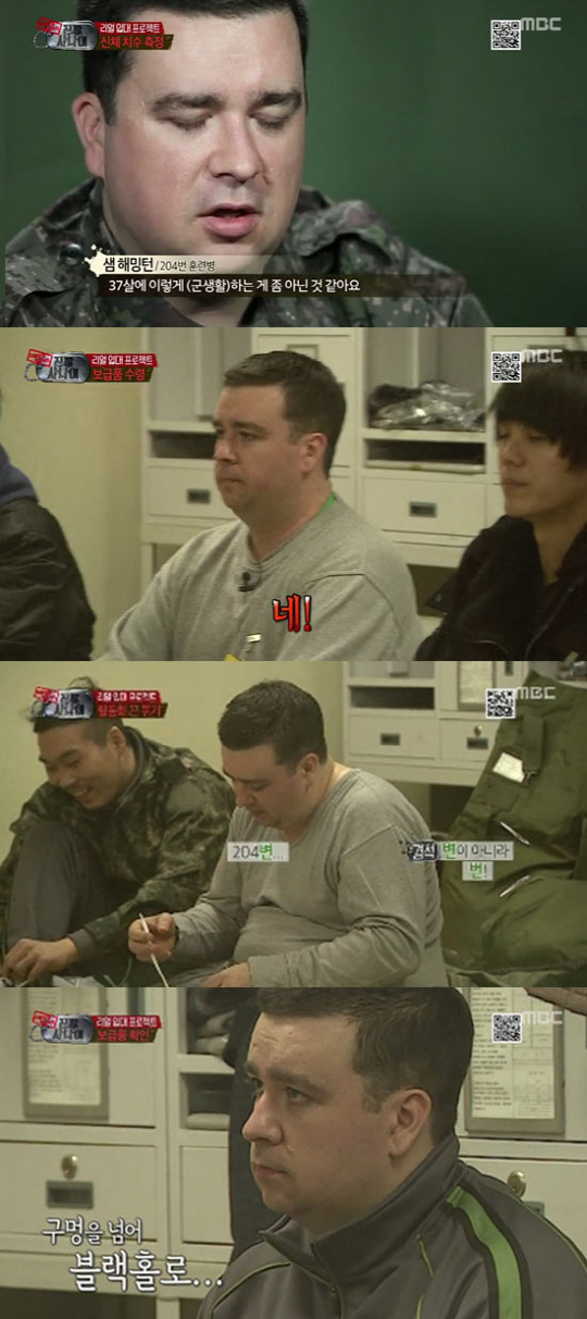 특히 어려운 군대 말투에 어려움을 느낀 샘 해밍턴은 "너무 긴장돼서 그런지 말은 잘 안 나와요"라며 관등성명(계급과 이름의 뜻으로 주로 군에서 자신의 신분을 드러낼 때 많이 쓰이는 말)에 대한 어려움을 표했다.