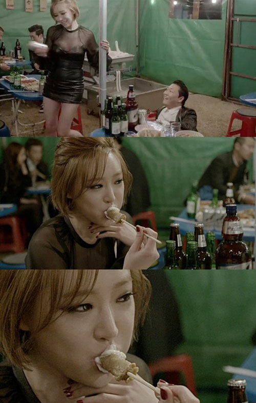 특히 가인은 싸이와 함께 포장마차에서 음식을 먹는 장면에서 소스를 잔뜩 바른 어묵을 야릇하게 먹는 모습으로 묘한 성적 연상을 불러일으키며 '19금 섹시코드'를 가감 없이 선보였다.