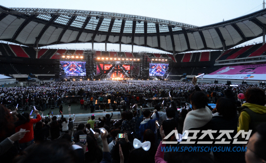 이쯤되면 비즈니스적 측면에서 한국 콘서트 역사는 '젠틀맨' 이전과 이후로 나뉘어질 판이다. 과거 콘서트에 대기업은 협찬을 '해주셨고', 가수는 그 혜택을 받기 위해 어필해야 했다. 그런데 싸이는 이 '갑을(甲乙) 관계' 자체를 바꿔버렸다. 이번 콘서트 현장은 바로 그 현주소를 여실히 보여줬다.