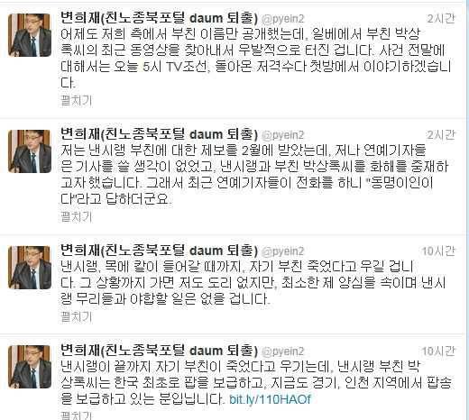 이에 낸시랭은 "변희재씨와 일베는 남의 아픈 가정사를 들쑤시지 마세요. 진실을 알리려 한다고요? 당신들이 남의 가정사 깊은 곳까지 어찌 알 수 있을까요. 더 이상 저와 제가 사랑하는 주변 사람들을 괴롭히지 말아주세요"라고 분노했다.