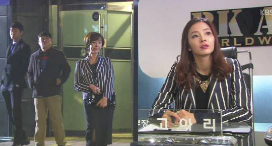 황정음과 한채영이 같은 스트라이프 재킷으로 서로 매력을 선보여 화제다.