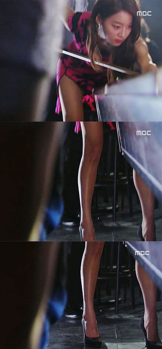 특히 포켓볼을 치는 장면에서 치파오를 연상시키는 옆트임 미니 드레스를 입은 한지혜의 다리가 클로즈업되며 '명품 각선미'가 그대로 노출, 시청자들의 시선을 사로잡았다.