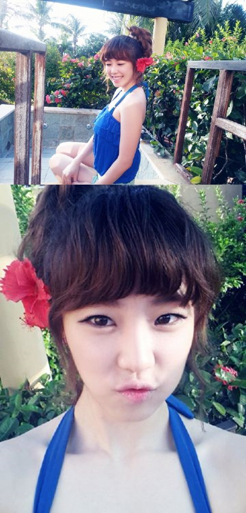 시크릿 멤버 전효성은 18일 오전 자신의 트위터에 "사이판에 왔습니다. 웰컴 투 사이판. 신이 나서 꽃을 달고"라는 신나는 글과 함께 두 장의 사진을 게재했다.