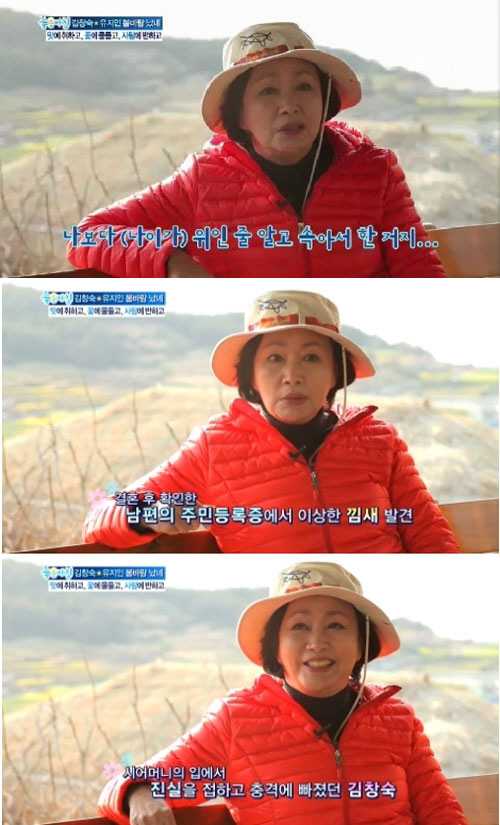 배우 김창숙이 남편에게 나이를 속아서 결혼했다고 밝혔다.