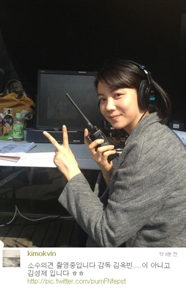 김옥빈은 지난 17일 자신의 트위터에 "소수의견 촬영 중입니다. 감독 김옥빈...이 아니고 김성제입니다"라는 글과 함께 한 장의 사진을 게재했다.