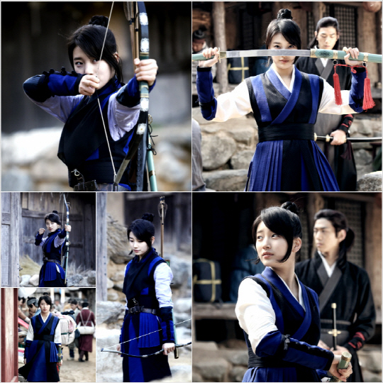 수지는 우월한 키와 태권도로 익힌 운동신경을 바탕으로 절도 있는 동작과 화끈한 발차기, 능수능란한 검술, 다부진 표정을 선보이며 격이 다른 액션 연기를 완성하고 있다. 진검을 들고 카리스마를 폭발시키는가 하면, 화살 통을 등에 멘 채 지붕을 넘나들고, 화살을 쏘기 전 예리한 눈빛을 빛내는 등 '액션 여전사'다운 아우라를 뿜어냈다.