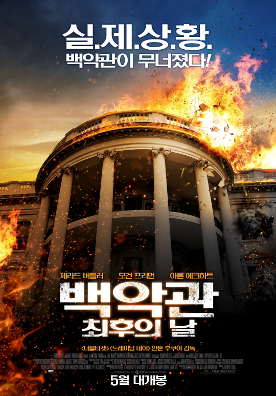 '백악관 최후의 날'은 북한 출신 테러리스트들이 백악관을 함락시키고 미국 대통령을 인질로 잡아 전세계를 전쟁 위기에 몰아넣는다는 이야기를 그린 작품이다. '트레이닝 데이' 등을 만든 안톤 후쿠아 감독이 메가폰을 잡았고, '300' 제라드 버클러, '다크나이트' 모건 프리먼과 아론 에크하트 등의 연기파 배우들이 총 출동했다. 7000만 달러의 막대한 제작미를 들여 백악관을 완벽 재현했으며, 수송기 AC-130 추락 장면, 워싱턴 기념탑 붕괴 장면, 백악관 주변 공중 초토화 장면 등 백악관이 무너지는 모습을 화려하게 그려냈다.