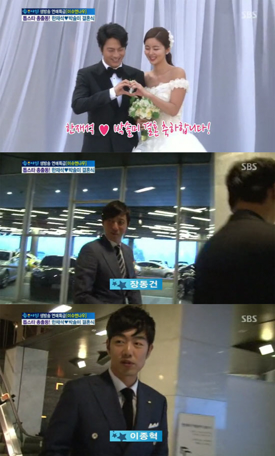 22일 방송된 SBS '좋은 아침'에서는 지난 21일 광장동 쉐라톤 워커힐 호텔에서 결혼식을 올린 한재석, 박솔미 부부의 결혼식 현장 모습을 공개했다.