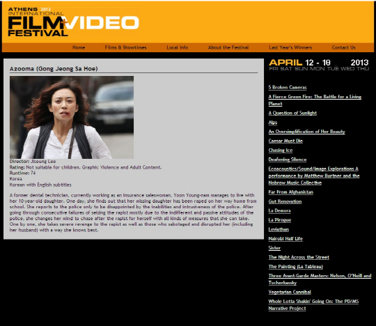 애선스국제영화제는 40년의 전통을 자랑하는 국제영화제로 1974년 개최된 이후 수많은 세계 독립영화들을 초청, 소개한 영화제다. 실험영화, 다큐멘터리, 애니메이션 등 각 부문에서 1위부터 3위까지 선발하여 시상하는데 '공정사회'가 장편극영화 경쟁부문(Feature Narrative)에서 1등상(First Prize)을 차지했다. '공정사회'의 이번 수상은 국제영화제에서만 6번째로 지난해 부산국제영화제 감독조합상(여자배우상)을 시작으로 코스타리카국제영화제, 네바다국제영화제, 벨로이트국제영화제, 어바인국제영화제 등에서 수상하며 영화의 저력을 보여주고 있다.