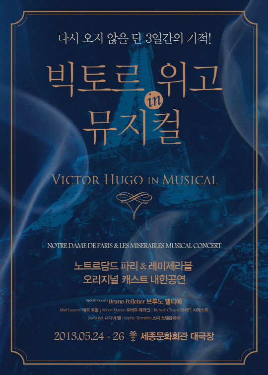 뮤지컬 '노트르담 드 파리'와 '레미제라블'의 오리지널 배우들이 서는 무대가 열린다. 오는 5월 25, 26일 이틀간 세종문화회관 대극장에서 펼쳐지는 '빅토르 위고 in 뮤지컬'.