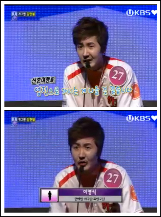 이영식의 센스있는 답변에 네티즌들은 '개그맨 이영식군 어떻게 저런생각을', '신혼여행을 염전? 아짜겠다' 등 재밌는 반응을 보였다.