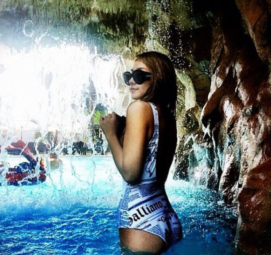 특히 등라인이 많이 파진 수영복을 입고 아찔한 뒤태를 공개, 잘록한 허리라인과 가느다란 팔라인을 과시해 네티즌의 부러움을 사고 있다.
